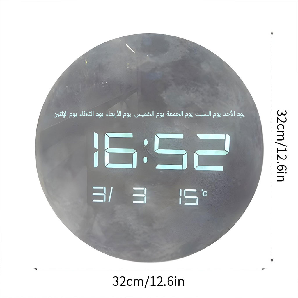 Affichage LED Grand Format : Dotée d'un écran LED de 13 pouces, cette horloge offre une visibilité optimale, même à distance, avec un affichage clair de l'heure, de la date et de la température.Format 12/24H : Personnalisez votre expérience avec le choix entre le format 12 heures (AM/PM) ou 24 heures, selon vos préférences.Fonction de Diminution Automatique de la Luminosité : L'éclairage LED s'ajuste automatiquement entre 22h00 et 6h59, réduisant l'intensité lumineuse pour un confort visuel optimal pendant la nuit.Affichage Multifonction : En plus de l'heure, l'horloge affiche la température ambiante et le calendrier, offrant ainsi des informations essentielles en un coup d'œil.Installation Polyvalente : Cette horloge peut être accrochée au mur ou posée sur un bureau, s'intégrant parfaitement à votre maison, bureau, salon ou chambre à coucher.