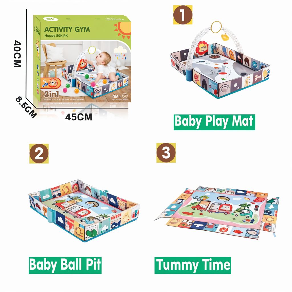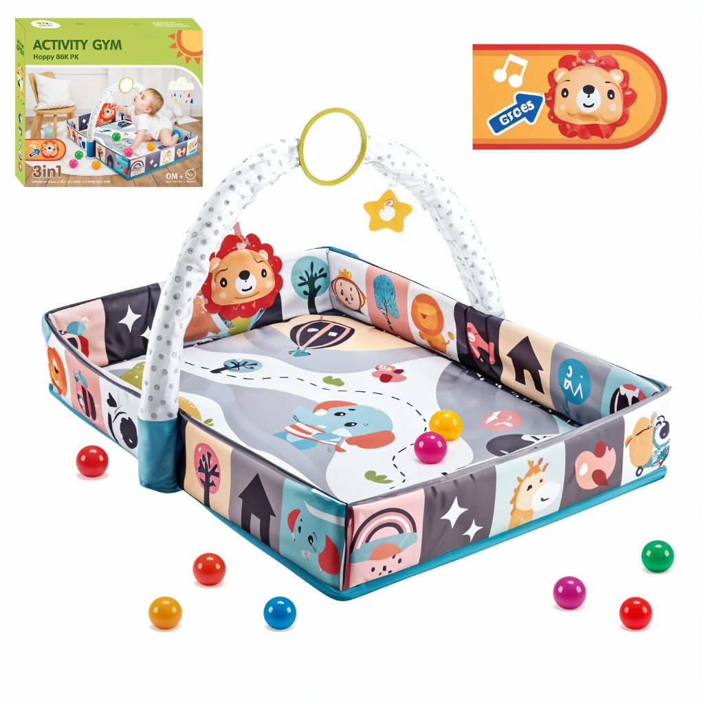 Offrez à votre bébé un espace de jeu sécurisé et interactif avec ce tapis d’éveil 3-en-1. Conçu avec des motifs de dessin animé colorés, il inclut une piscine à balles intégrée avec 8 balles océaniques, stimulant ainsi l’exploration sensorielle et la motricité de votre enfant dès la naissance. Parfait pour l'éveil, le jeu et l’apprentissage, ce tapis doux et confortable assure un développement ludique en toute sécurité.