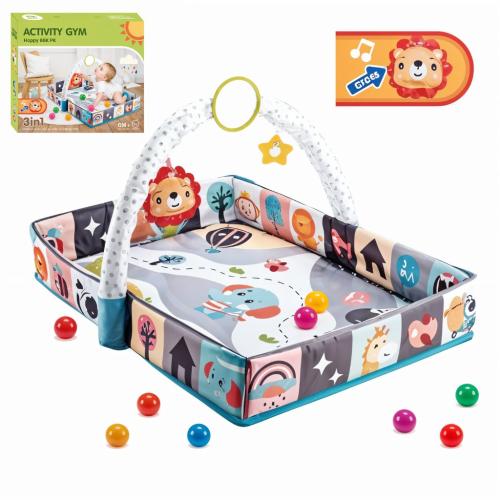 Tapis de jeu 3-en-1, combinant tapis d’éveil, aire de jeu et piscine à balles